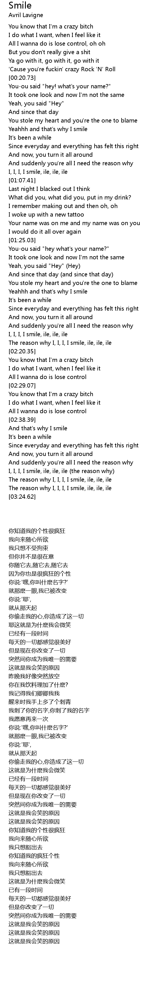 [02:59.12] I, I, I, I smile, ile, ile, ile (the reason why)