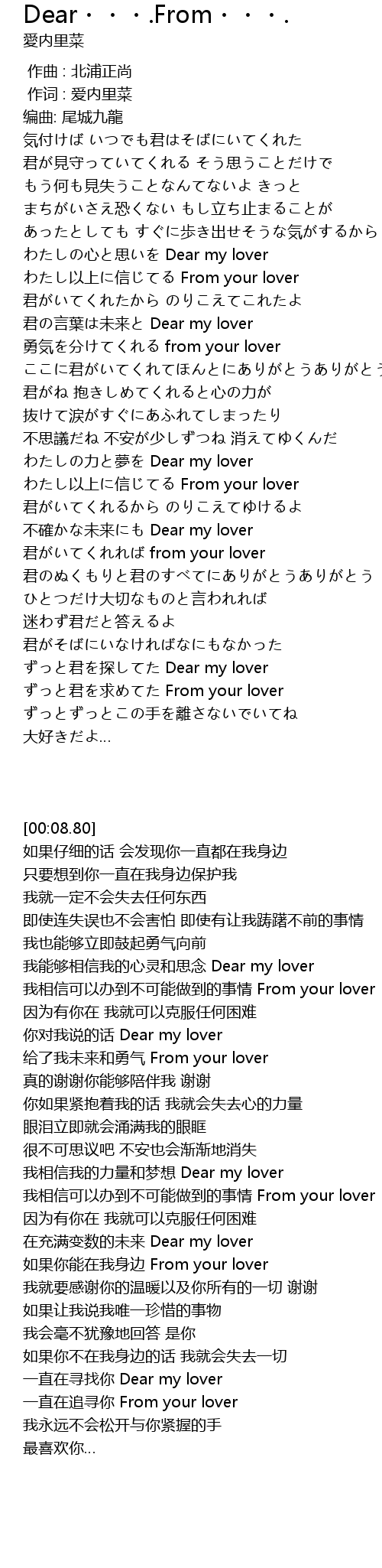 | [04:08.22] | jūn qiú From your lover |
