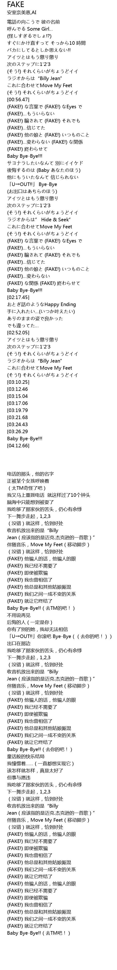 | [03:42.37][03:21.68] | FAKE! tā niáng FAKE! |
