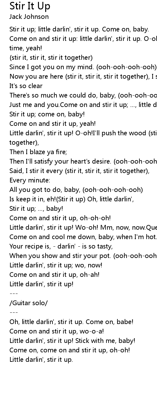 Come on and stir it up: little darlin', stir it up. O-oh!It's been a long, long time, yeah! |