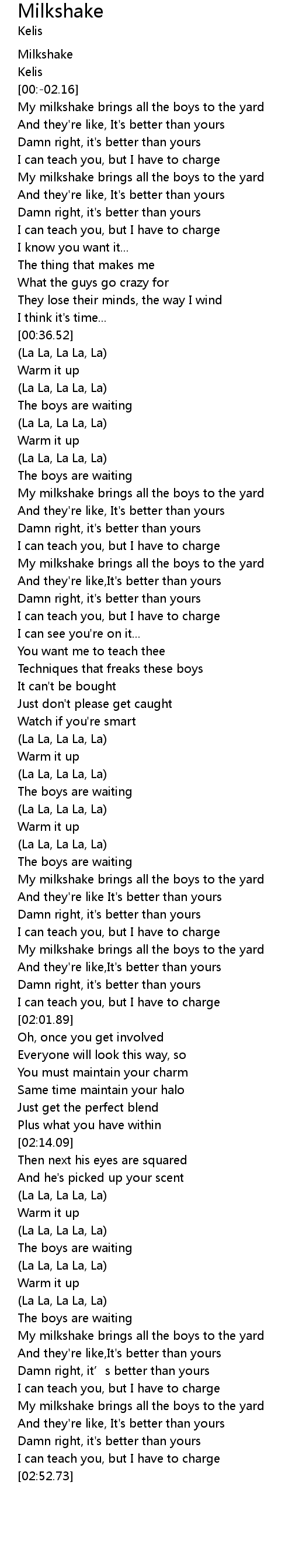 | [00:53.29] | My milkshake brings all the boys to the yard |