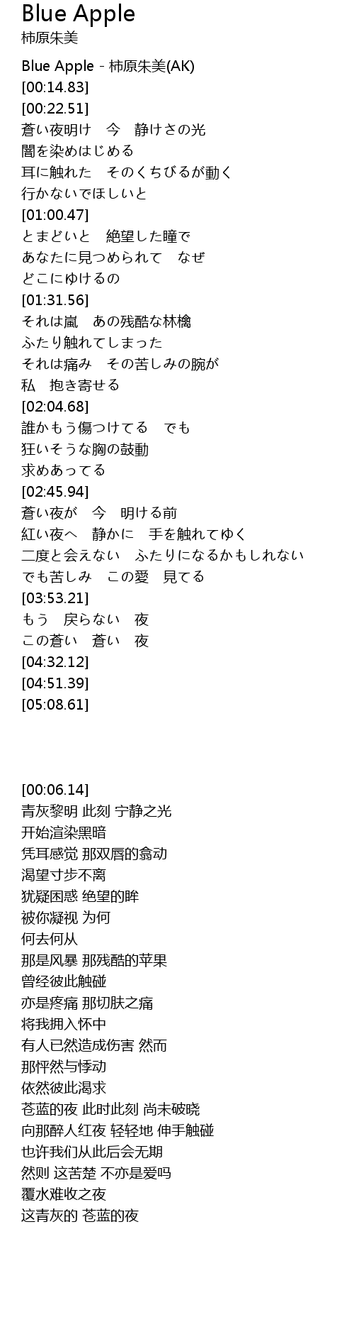 | [00:06.14] | Blue Apple - 柿原朱美(AK) |