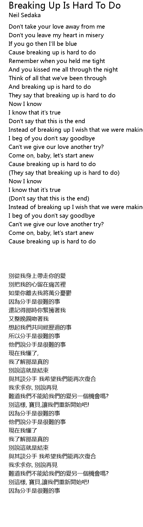 Cause breaking up is hard to do |
