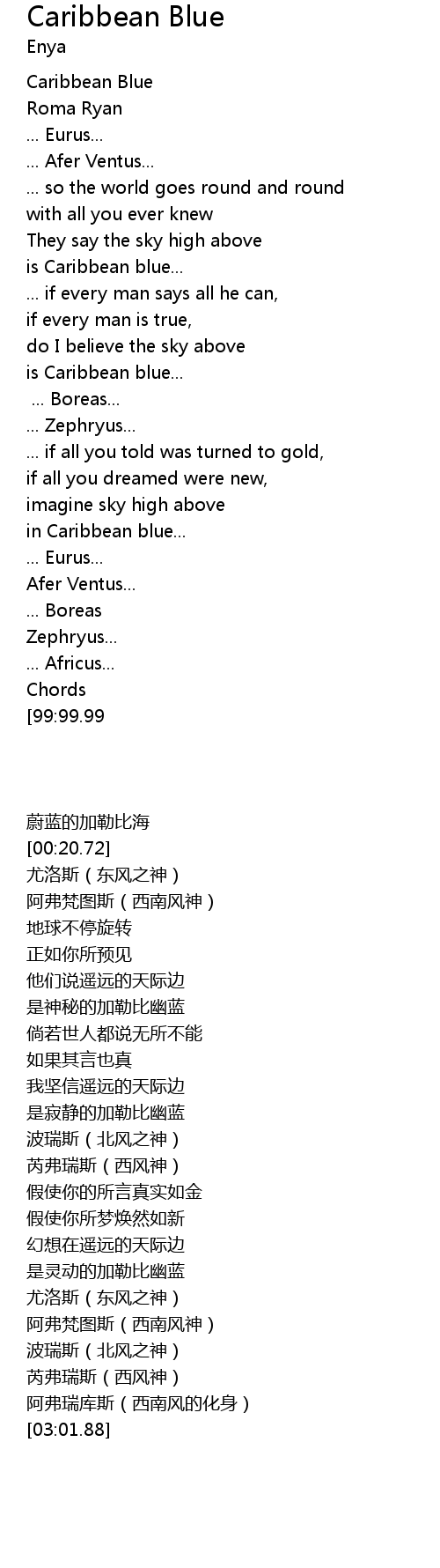 | [00:56.10] | 是神秘的加勒比幽蓝 |
