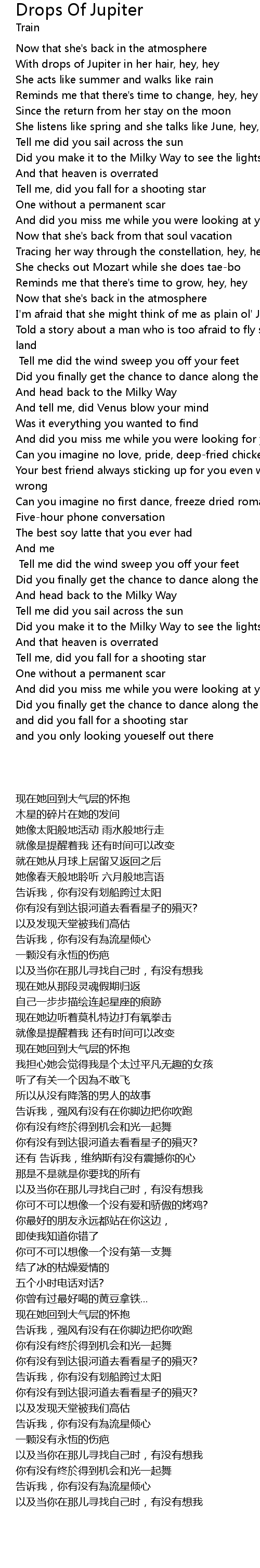 With drops of Jupiter in her hair, hey, hey |