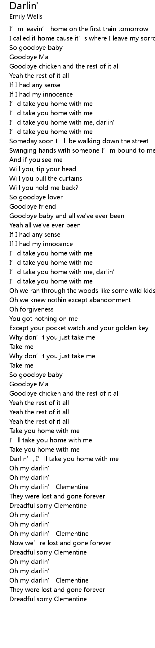 | Darlin’, I’ll take you home with me | |