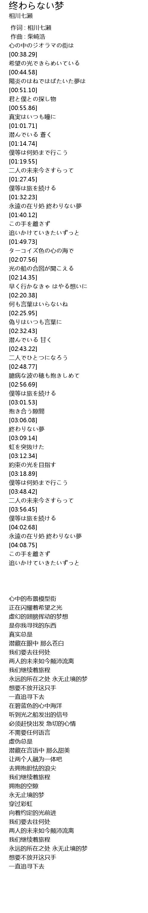 | [04:03.45] | 永遠の在り処 終わりない夢 |
