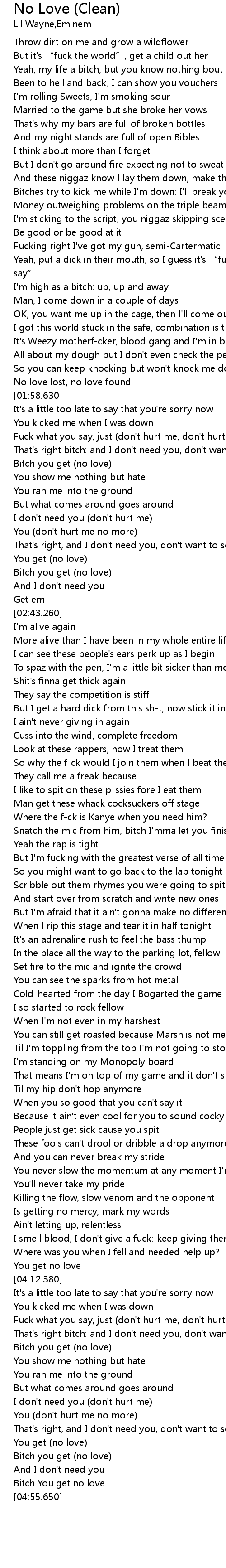 | [04:55.270] | Bitch You get no love |