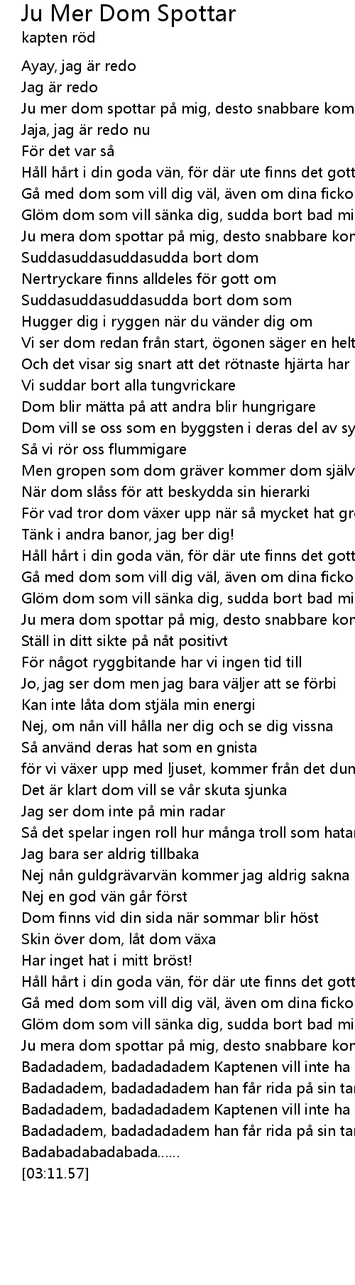| [02:37.83] | Badadadem, badadadadem Kaptenen vill inte ha nån guldgrävarvän yo |