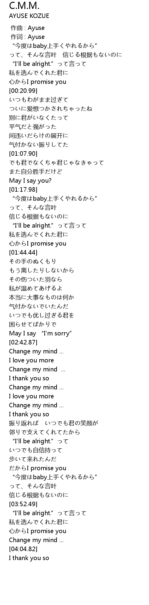 | [03:53.57] | “I'll be alright.”って言って |