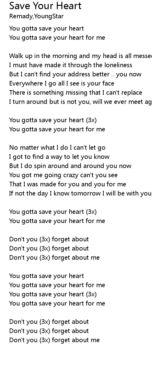 | You gotta save your heart (3x) | |