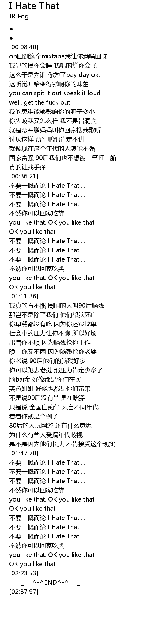 | [00:40.56] | 不要一概而论 I Hate That.... |