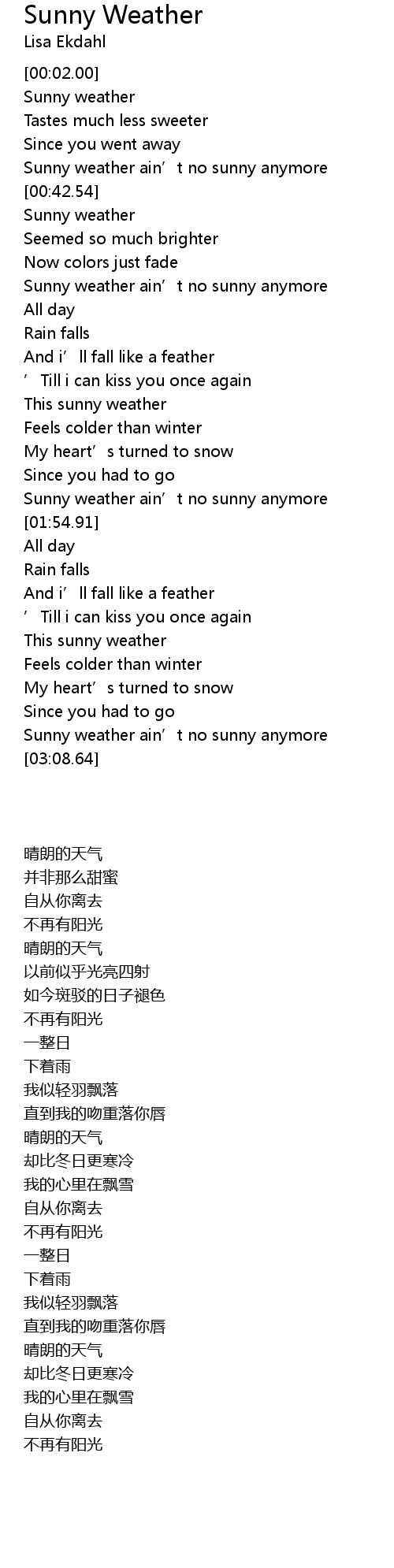 | [01:49.56] | Sunny weather ain’t no sunny anymore |