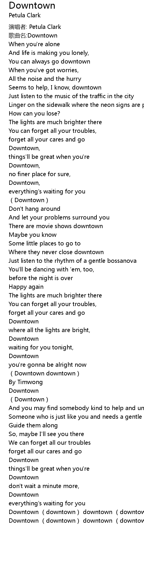 | [03:01.19] | Downtown (downtown) downtown (downtown) |