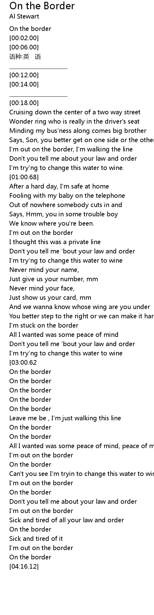 | [00:00.00] | On the border |