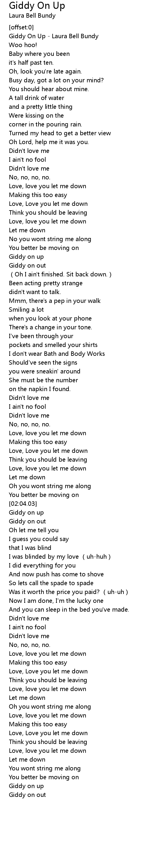 | [00:01.00] | Giddy On Up Laura Bell Bundy |