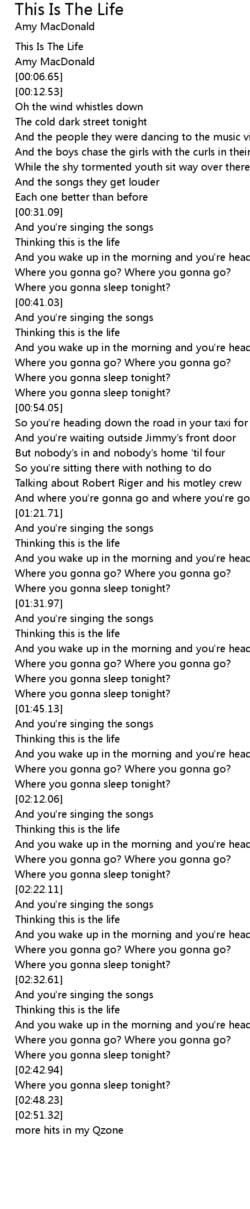 And where you're gonna go and where you're gonna sleep tonight |