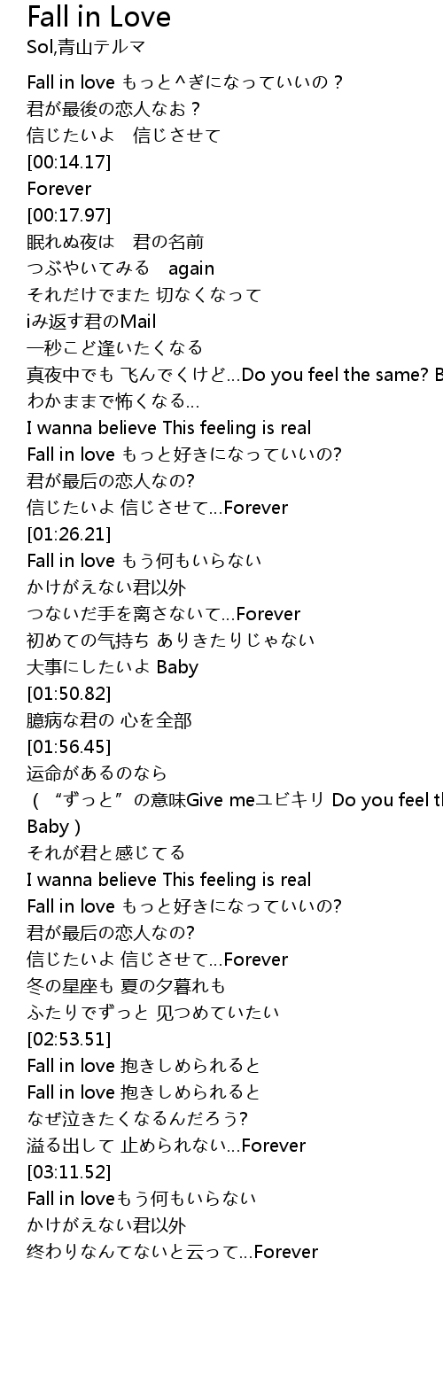 | [02:18.30] | Fall in love もっと好きになっていいの? |