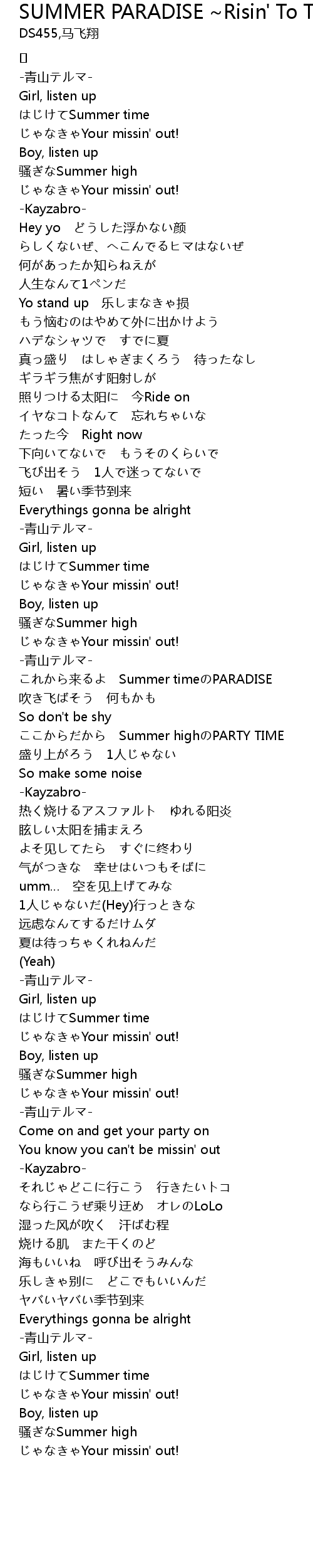 | 真っ盛り はしゃぎまくろう 待ったなし | |