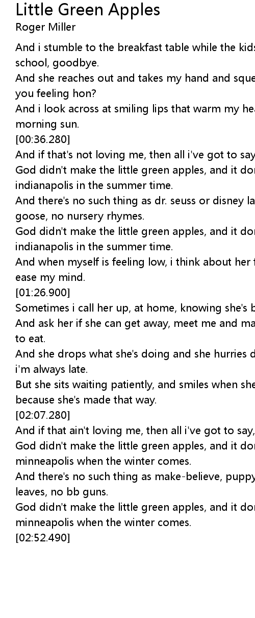 God didn't make the little green apples, and it don't snow in minneapolis when the winter comes. |