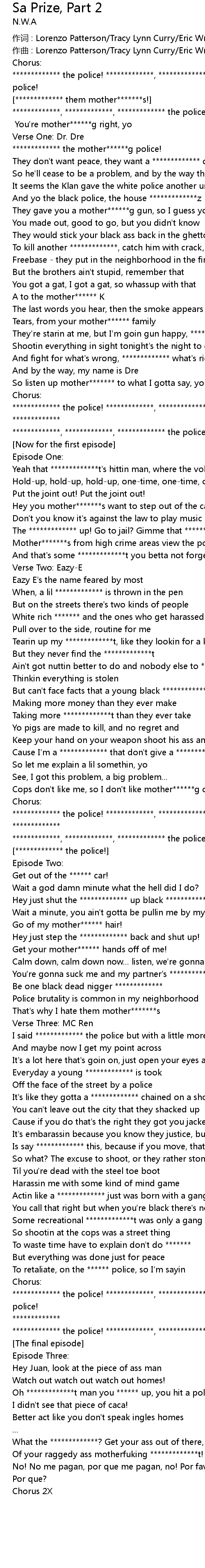 | 作词 : Lorenzo Patterson/Tracy Lynn Curry/Eric Wright/Dr. Dre | |