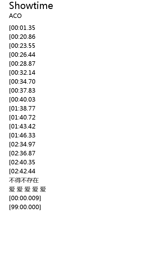 | [02:46.07][02:34.97][02:23.64][01:50.00][00:54.25] | Showtime Showtime |