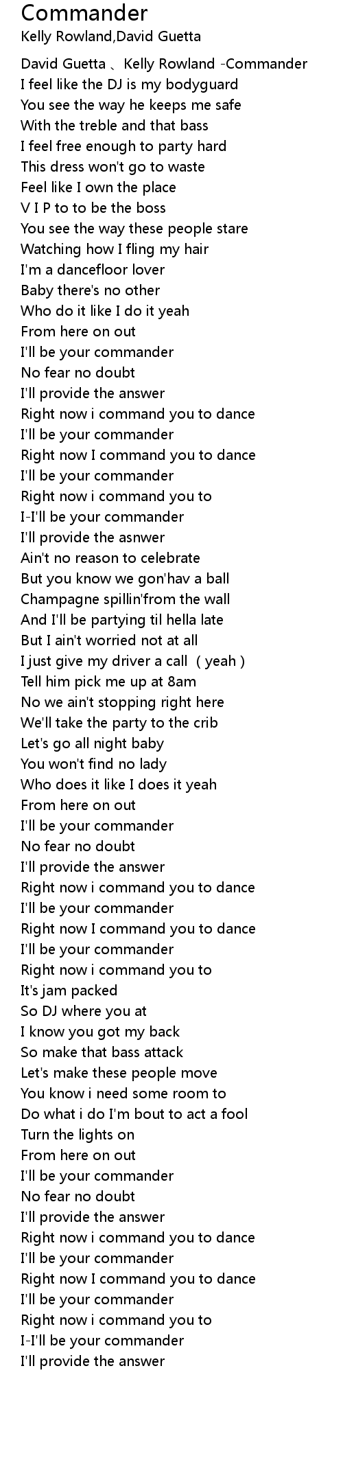 | [00:00.68] | David Guetta Kelly Rowland Commander |