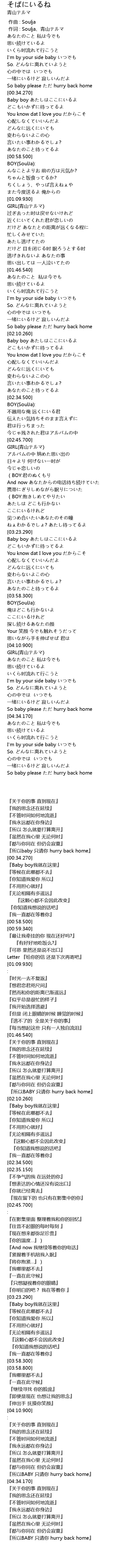 | [02:07.610] | So baby please ただ hurry back home |