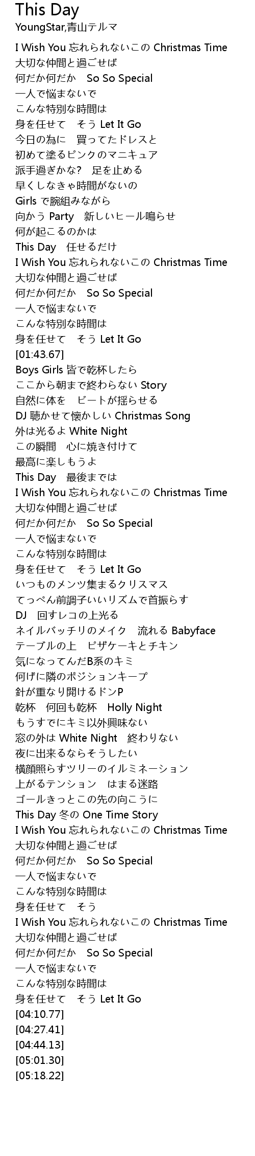 [03:49.13] I Wish You 忘れられないこの Christmas Time