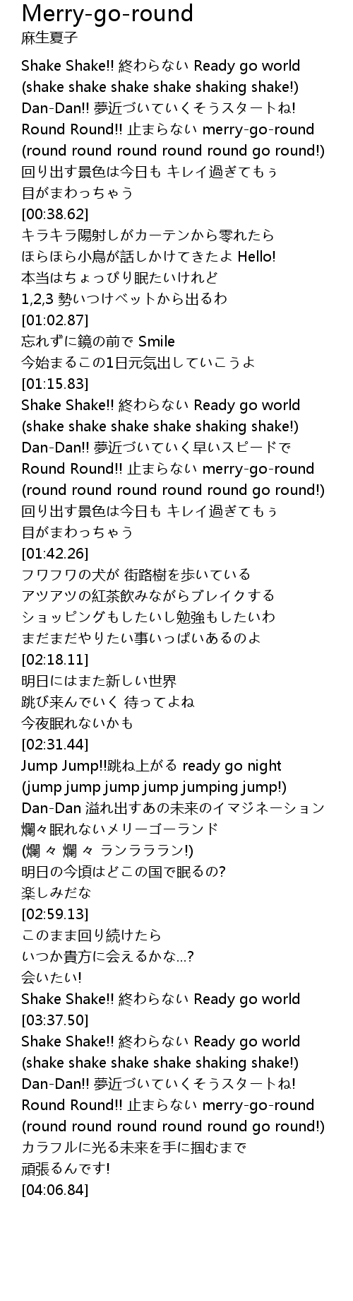 | [03:34.29] | Shake Shake!! 終わらない Ready go world |