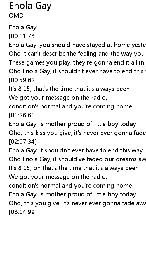 Oho Enola Gay, it shouldn't ever have to end this way |
