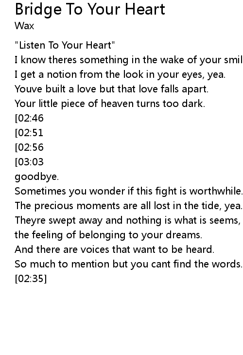 [03:25][03:03][01:56][01:00] but listen to your heart before you tell him goodbye.