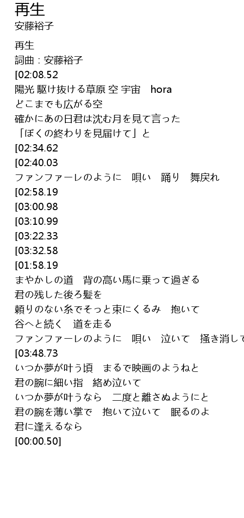 | [00:21.95] | 陽光 駆け抜ける草原 空 宇宙 hora |