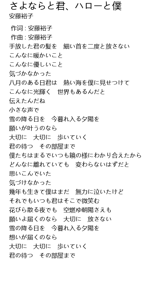| 歌曲 | さよならと君、ハローと僕 |