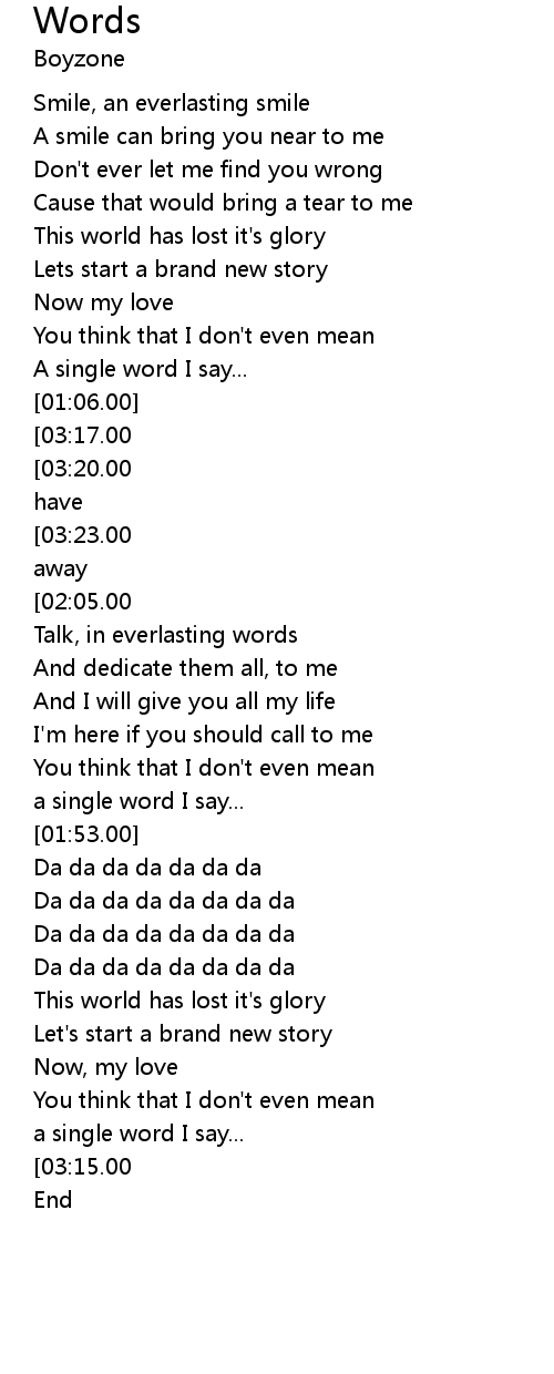 [03:32.00][03:20.00][03:08.00][02:10.00][01:59.00][01:11.00] And words are all I have