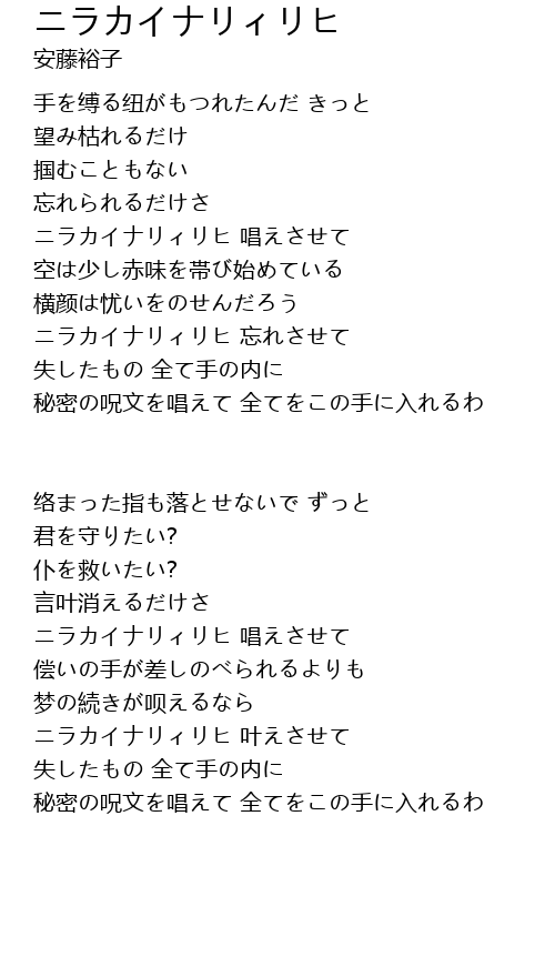 | ニラカイナリィリヒ 唱えさせて | |