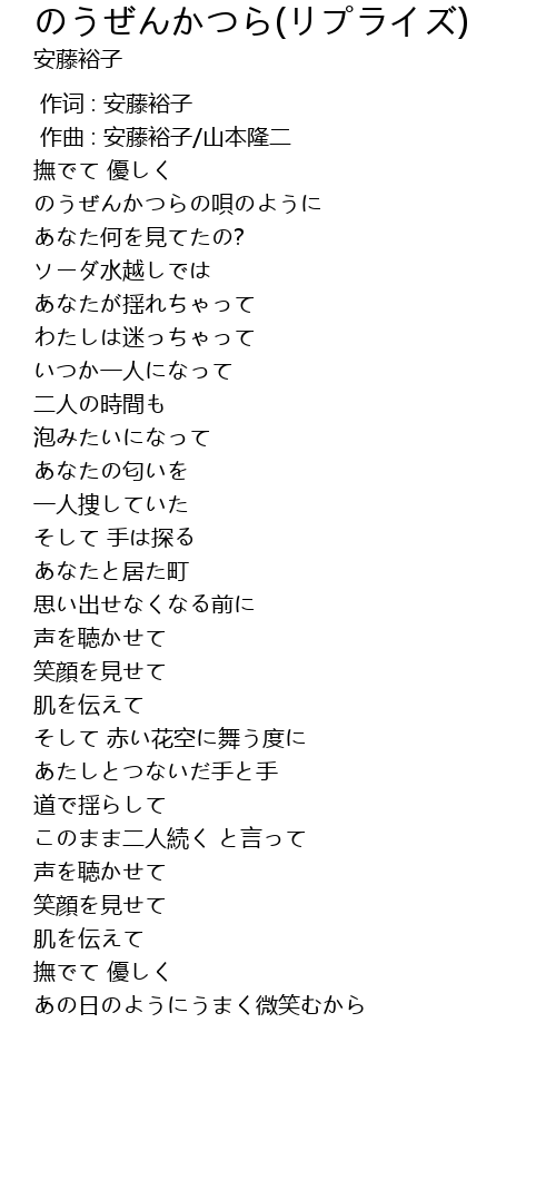 | [00:15.013] | のうぜんかつらの唄のように |