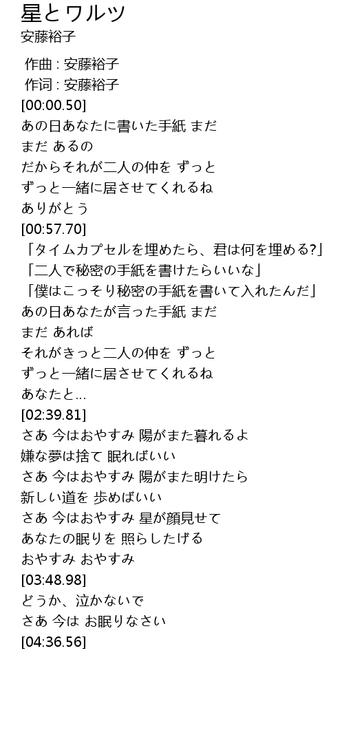 | [01:32.94] | 「僕はこっそり秘密の手紙を書いて入れたんだ」 |