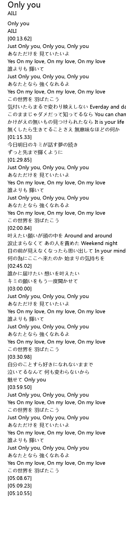 | [05:00.44] | Yes On my love, On my love, On my love |
