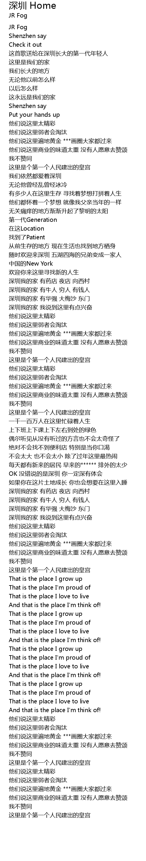 | [00:17.95] | 这首歌送给在深圳长大的第一代年轻人 |