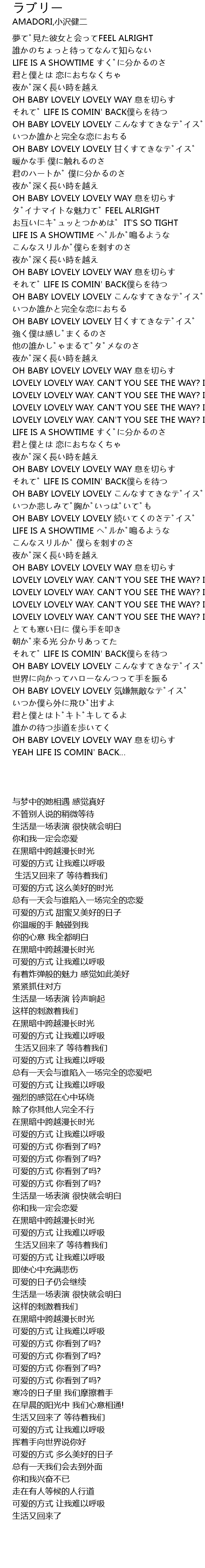| [04:30.956] | OH BABY LOVELY LOVELY 続いてくのさデイズ |