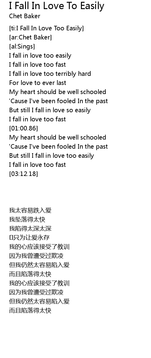 | [00:01.50] | I fall in love too easily |