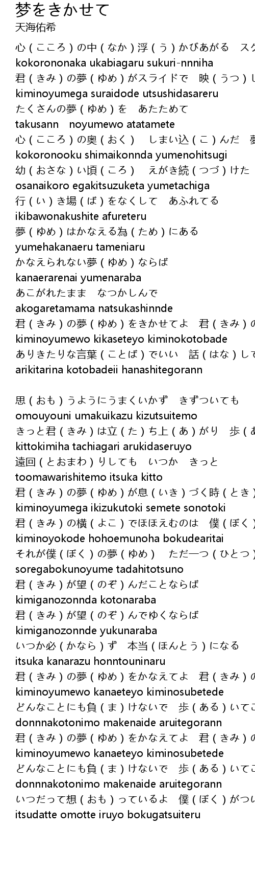 | kiminoyumewo kikaseteyo kiminokotobade | |