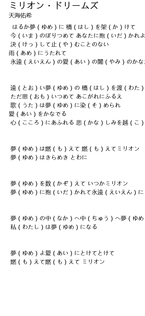 | 遠(とお)い夢(ゆめ)の 橋(はし)を渡(わた)る | |