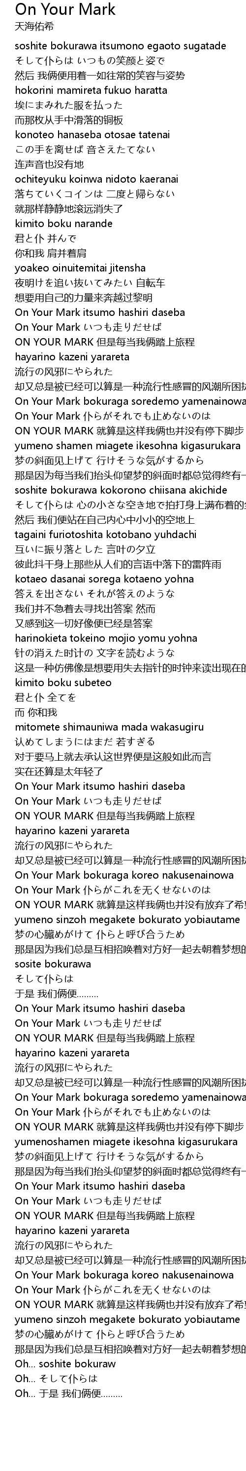 | 歌曲 | On Your Mark |