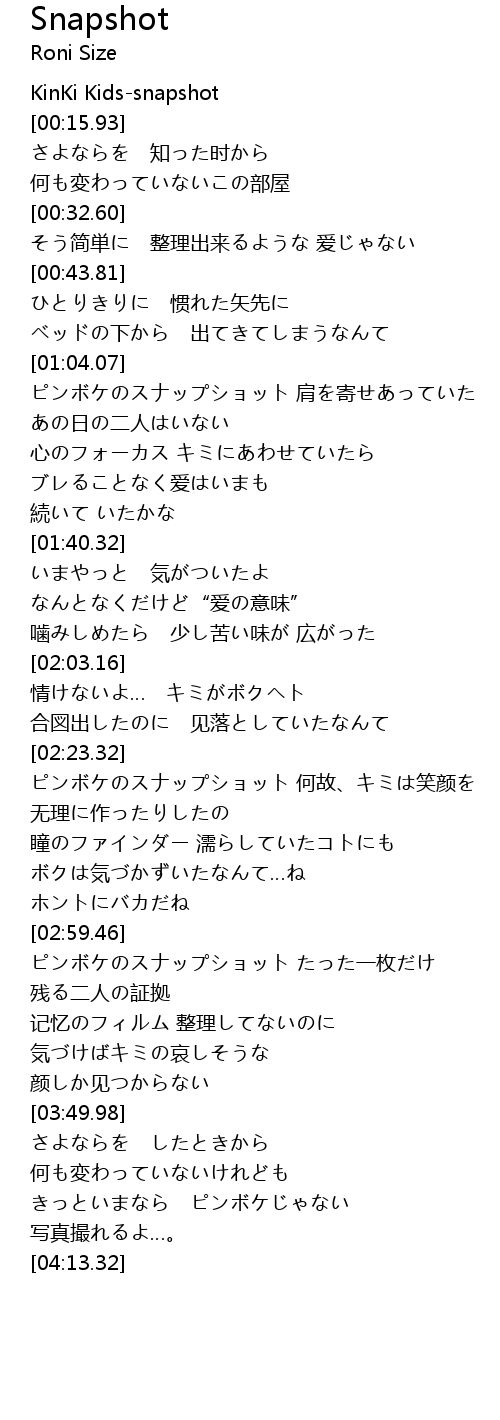 | [00:00.00] | KinKi Kidssnapshot |