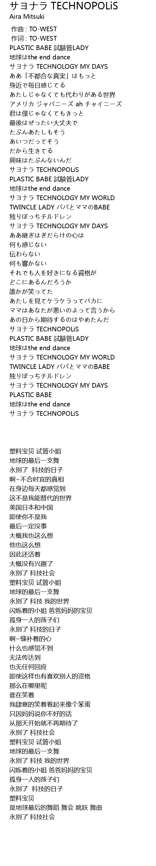 | [00:44.76] | サヨナラ TECHNOPOLiS |