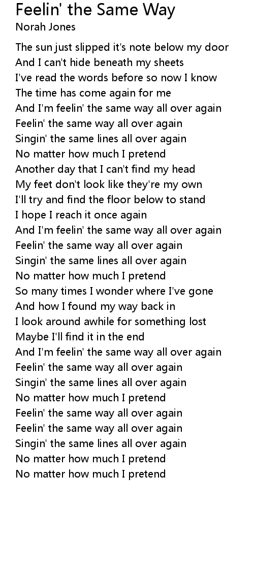 And I'm feelin' the same way all over again |