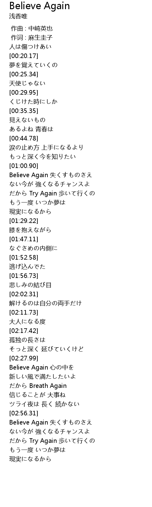 | [01:01.57] | Believe Again shī |
