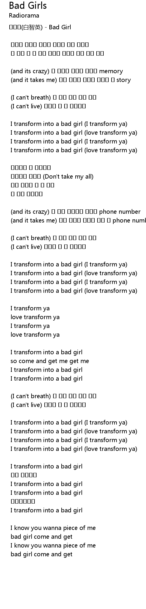 | I transform into a bad girl (I transform ya) | |